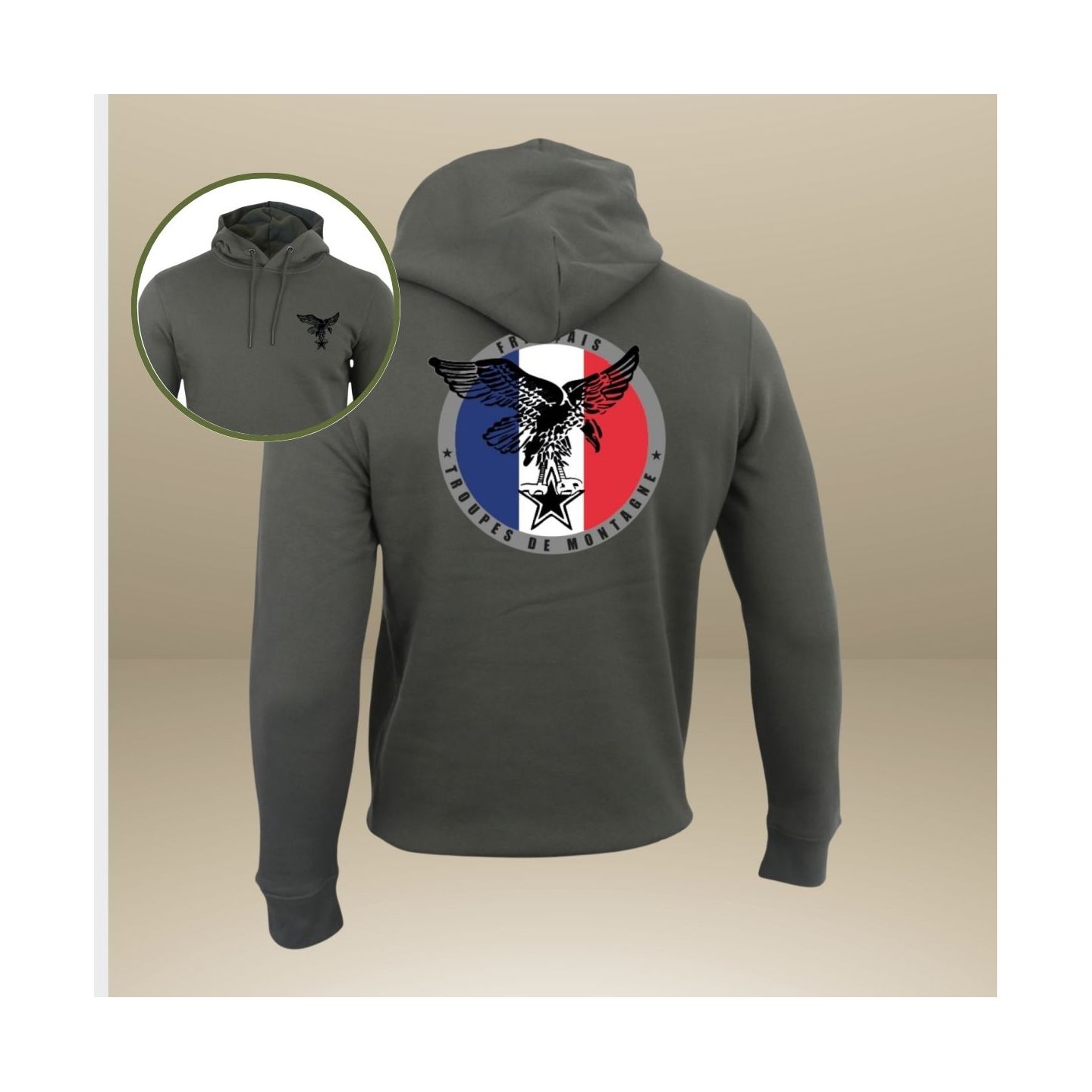 • Sweat-shirt 350g Troupes de Montagne FrançaiseOrganic Kakhi
