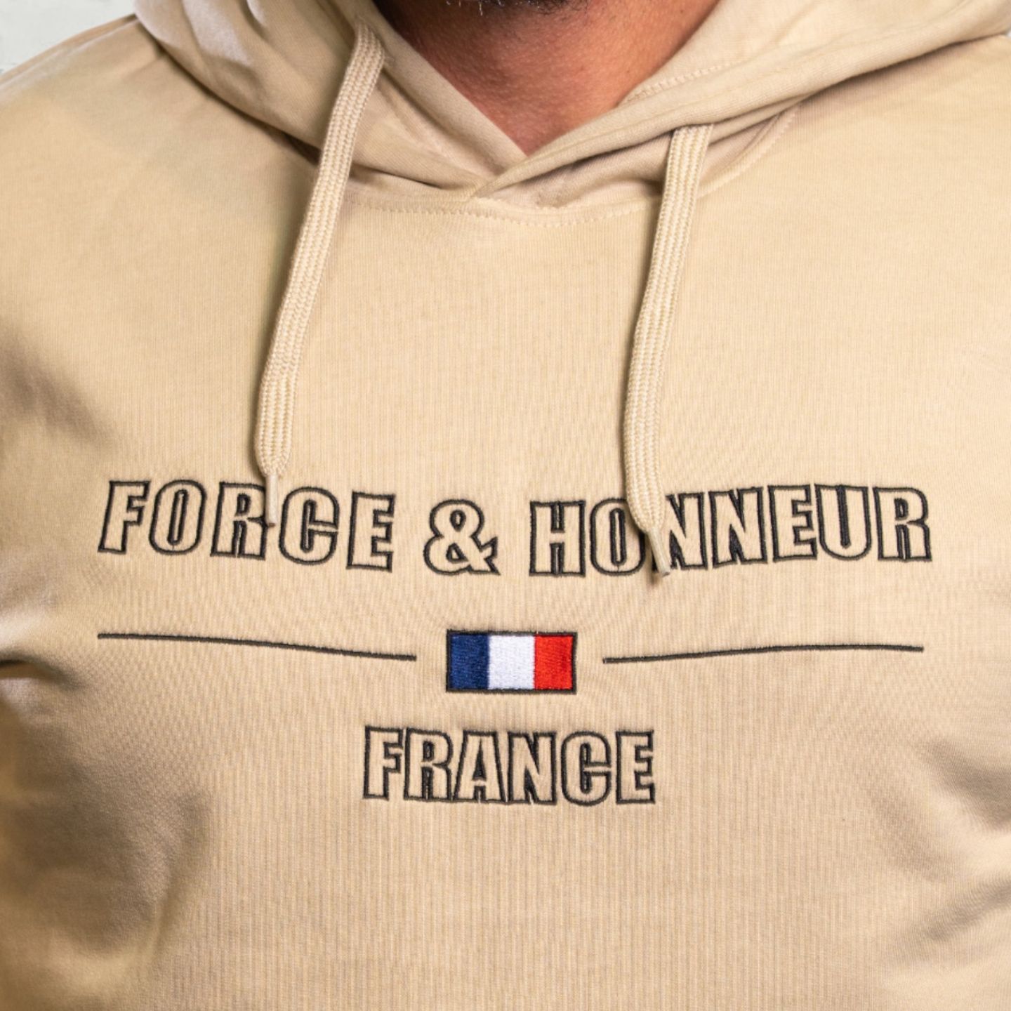 - Inscription Force & Honneur avec “France” brodé + drapeau tricolore