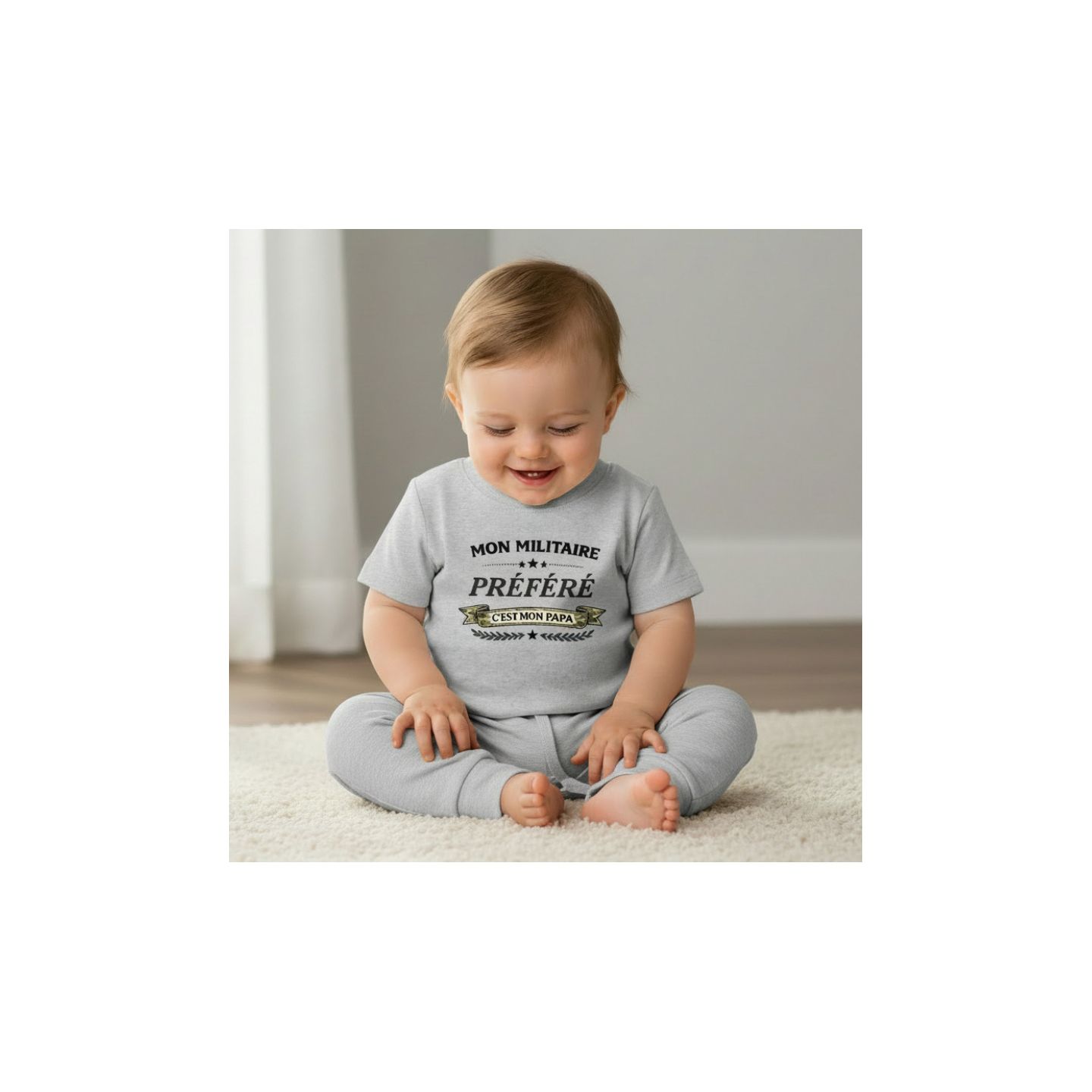 • T-shirt mini soldat Mon Militaire Préféré gris chiné