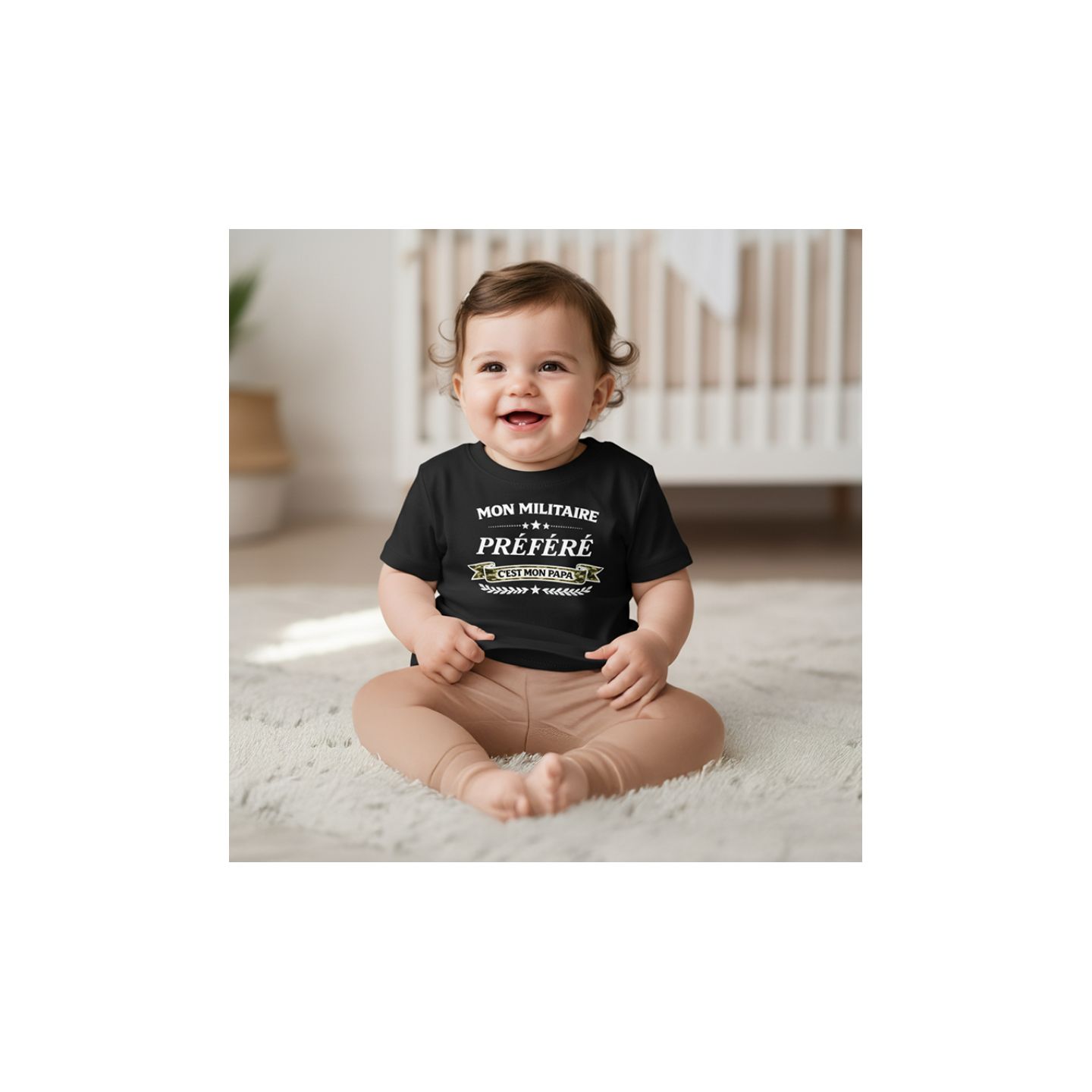 T-shirt mini soldat Mon Militaire Préféré noir Tailles 2-4A