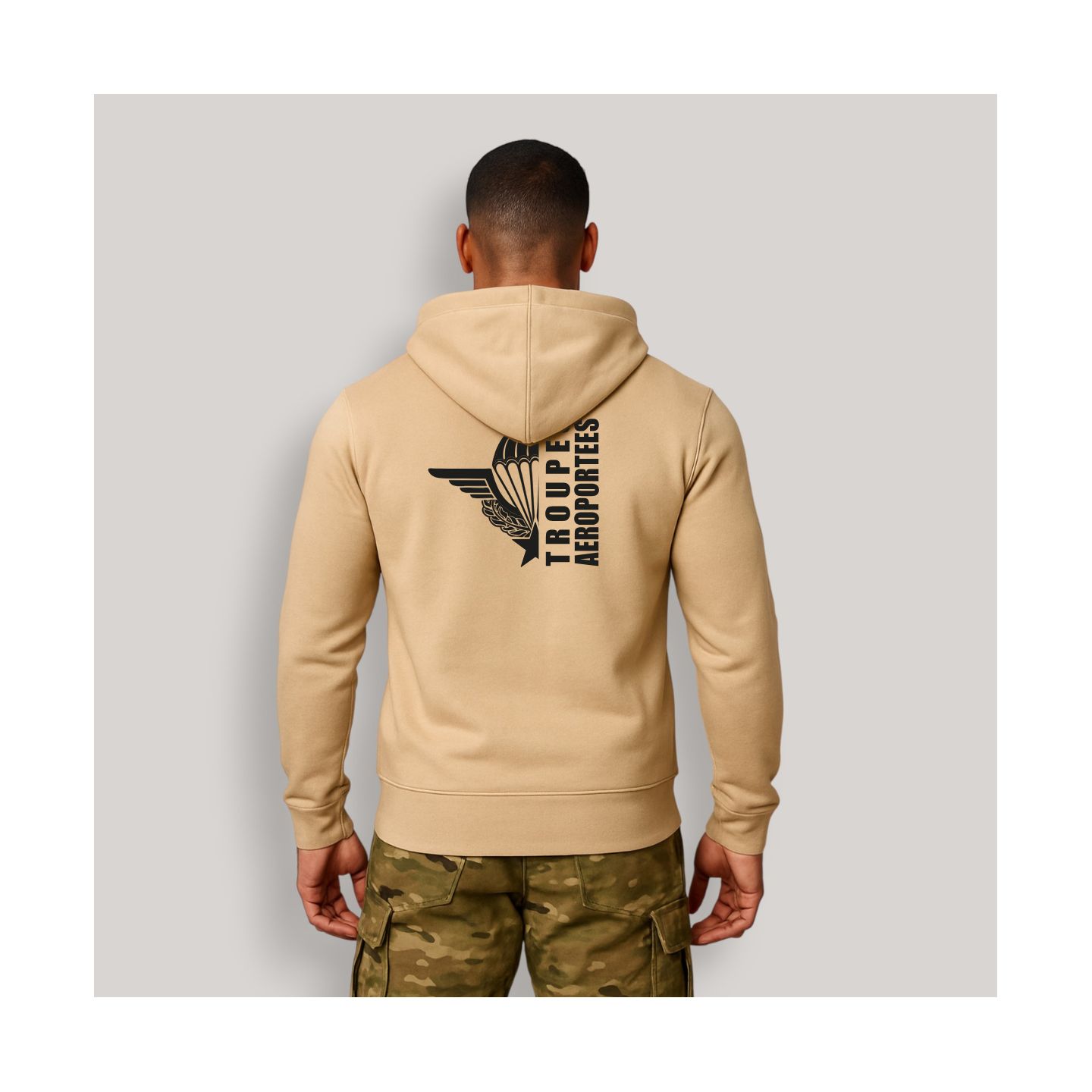 Sweat-shirt zippé Troupes aéroportées Design Light sand Tailles L